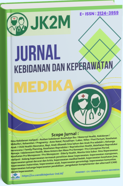 Jurnal Kebidanan dan Keperawatan Medika berdiri dimulai pada tahun 2025 dibawah naungan CV. Cendikia Jenius Indonesia yang sudah terdaftar di Kementerian Hukum dan HAM RI Direktorat Jenderal Administrasi Hukum Umum Nomor : AHU-0073637-AH.01.14 Tahun 2023 dengan sistem publikasi jurnal terbitan dengan Open Journal Systems (OJS) dimana publikasi dilakukan secara online dimana penulis, pembaca dan mahasiswa bisa mengkases jurnal ini tanpa dibatasi ruang dan waktu. Jurnal Kebidanan dan Keperawatan Medika dimaksudkan sebagai media kajian ilmiah hasil penelitian, pemikiran dan kajian analisis-kritis mengenai penelitian Ilmu Kebidanan meliputi : Asuhan kebidanan Kesehatan Ibu / Maternal Health, Kebidanan / Midwiferi, Kehamilan / Pregnancy - Ante Natal, Persalinan / Labor, Nifas / Post Partum, Kesehatan Anak / Child Health (Neonatus, Bayi, Anak dibawah lima tahun dan Anak Pra sekolah ), Keluarga berencana / Family Planning, Kesehatan Reproduksi / Reproduction Health, Kesehatan Reproduksi Remaja / Adolenscent Health, Masa Antara dan Masa Pra Konsepsi / Pre-Conception Period, Kesehatan Pra Menopause / Pre Menopause - Elderly Health, Wanita Usia Subur dan Keperawatan mencakup semua bidang keperawatan termasuk penelitian dasar keperawatan, keperawatan manajemen, keperawatan gawat darurat dan kritis, keperawatan medikal-bedah, keperawatan kesehatan jiwa, keperawatan maternitas, keperawatan anak, keperawatan gerontologi, keperawatan komunitas, keperawatan keluarga keperawatan pendidikan , pengobatan komplementer dan alternatif (CAM) dalam keperawatan.