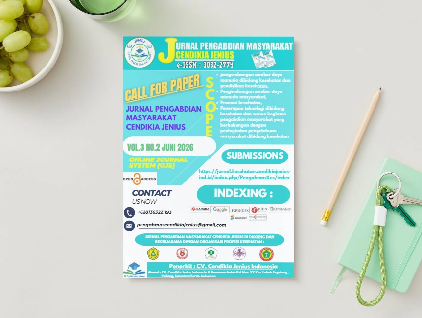 Call for paper jurnal PENGABDIAN MASYARAKAT CENDIKIA JENIUS edisi Juni 2026 , Volume 3 No.2 Juni 2026 dengan focus dan scope :