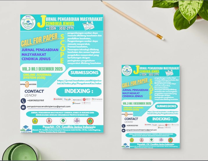Call for paper jurnal PENGABDIAN MASYARAKAT CENDIKIA JENIUS edisi Desember 2025 , Volume 3 No.1 Desember 2025 dengan focus dan scope :